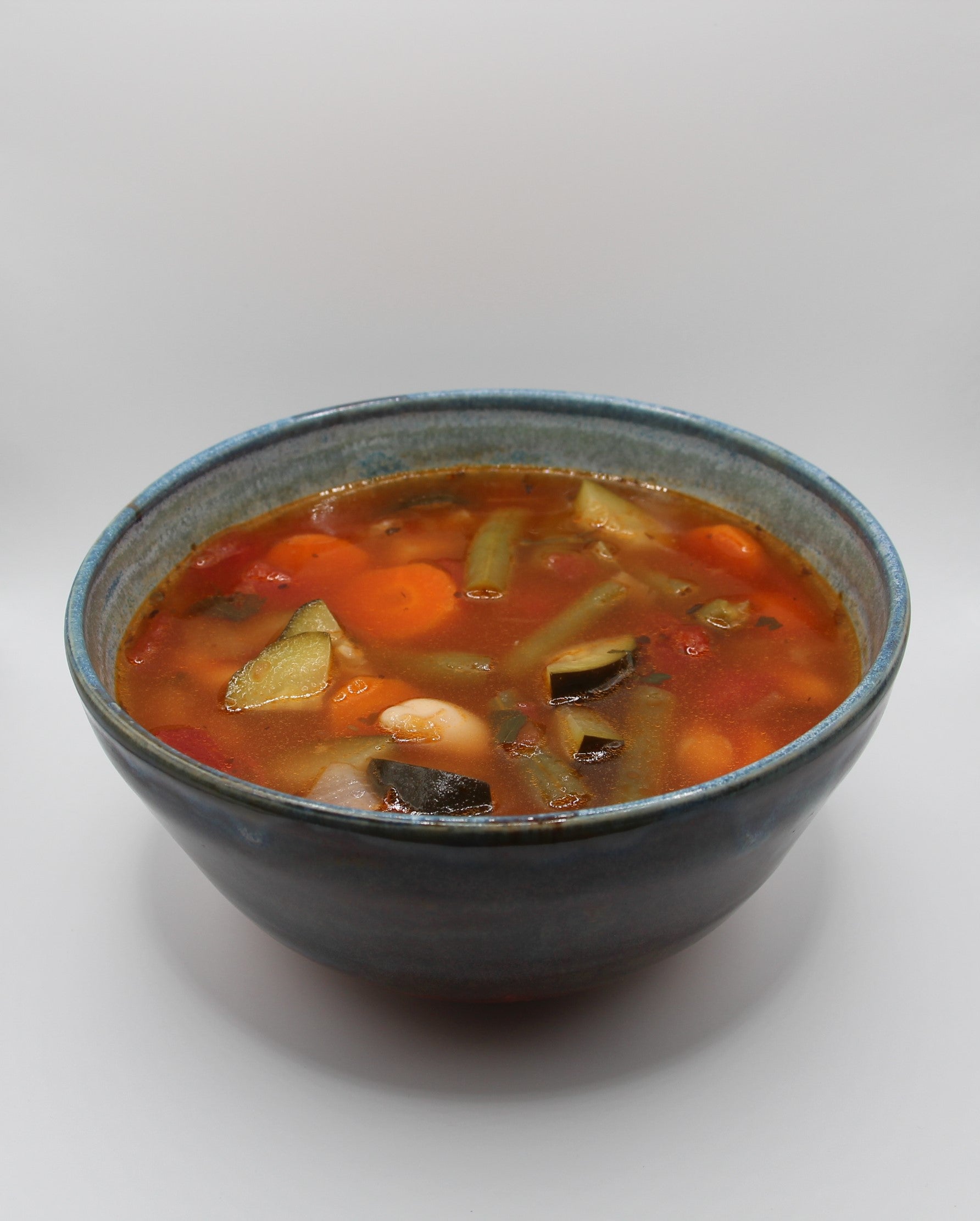 Loaded with a variety of fresh vegetables (carrots, onions, celery, green beans and zucchini), an all-natural vegetable broth and flavorful seasonings, our healthy minestrone soup is made gluten-free with buttery cannellini beans. (While this soup is made with all gluten-free items, it is produced in the same kitchen as other products that contain gluten).